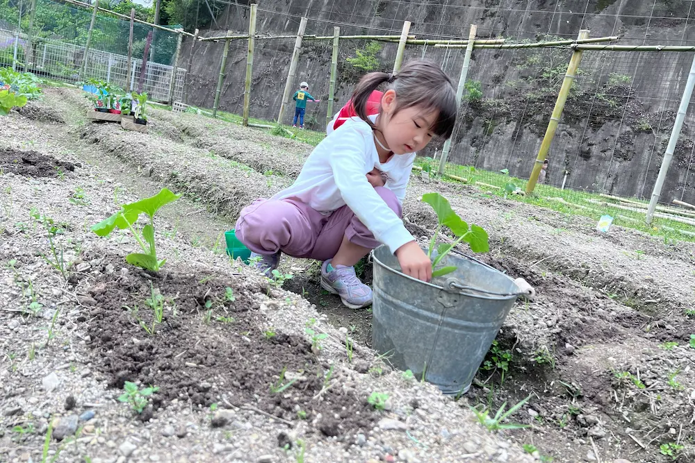 みぎわの子どもたちが、自分たちで育てたい作物を毎年選んで、種まきから栽培管理、収穫まで経験できる菜園がここにあります。